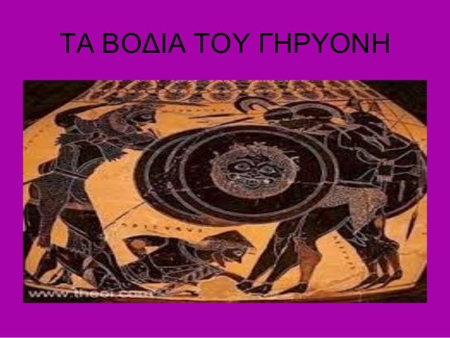 Ο Γηρυόνης ήταν βασιλιάς στην Ταρτησσό της Ισπανίας και είχε τη φήμη του δυνατότερου ανθρώπου στον τότε κόσμο. Ήταν ένα φοβερό τέρας που το είχε γεννήσει ο Χρυσάορας με τη κόρη του Ωκεανού, τη Νύμφη Καλλιρόη.